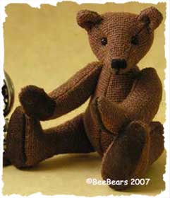 Alexander is an 2.9" tall old style bear.He has not a single hair left but this makes him so adorable He has Onyx eyes and is filled with sheep wool. Alex is actually made from mohair fur-if there whould be any left. Paws and feet are made of fine leather. |