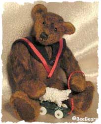 Mikky is an old style bear which is 2.9 inches tall His fur is hand-dyed and his collar is made, of fine leather. He has Onyx eyes and is filled with sheep wool. Mikkys little sheep is not included. Paws and feet are made of fine leather. |