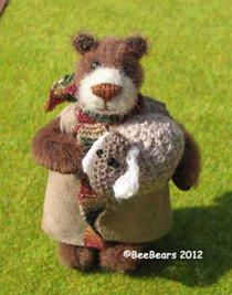 Seppel is a little shepard which is 3.2 inches tall. His coate is made of leather and his scarf is handknitted. He has Onyx eyes and is filled with sheep wool. Seppel is looking well after this 0,6inches tall crochetet sheep. |