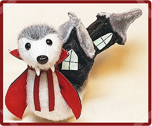 Eigentlich ist Edward gar nicht so bissig wie er ausschaut aber als Vampirschnecke muß man hat sein Image pflegen. Edward versucht mit seiner stattlichen Größe von 8cm Höhe und 11cm Länge wenigstens etwas Schrecken zu verbreiten. Die Bastelpackung beinhaltet eine ausführliche bebilderte Anleitung und die Materialien um Edward, das Schloss und den Umhang zum Leben zu erwecken. Auch die handmodellierten Vampirzähnchen sind dabei. Die Umhanginnenseite ist standesgemäß aus roter Seide. |