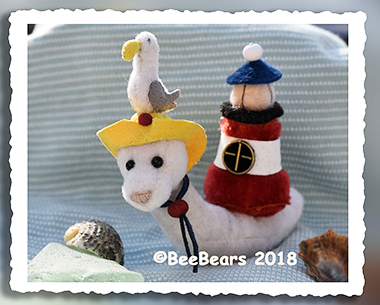 Die Bastelpackung für den 7,5cm großen Fiete und seine 2,5cm große Möwe, bringt viel Zubehör mit: Prismenstifte,Miniknopf, Halstuchperle,Augen, Splinte usw. Es ist alles enthalten um die Schnecke mit Regenhut & Möwe und ihren Leutturm zu fertigen. Füllwatte,Stahlgranulat,Garn usw. sowie das übliche Werkzeug wird zusätzlich benötigt. Die Bastelpackung kostet 16 Euro + Porto |