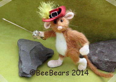 Die Bastelpackung für den 7cm großen Aramis ist sehrumfangreich. Enthalten sind: Stoffe für Körper,Ultrasuede für die Arme,Beine und Ohren. Material für den Degen und für den Hut,inkl.Feder und Biegeanleitung für die Hutschnalle, Scheiben-gelenke, Splinte und Glasaugen sind auch mit dabei. Und natürlich eine ausführliche mehrseitige, bebilderte Anleitung. |