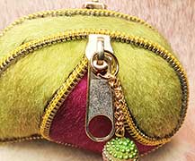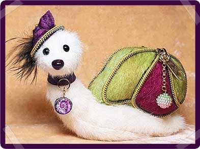 | Primrose ist wirklich ein ganz besonderes Schneckchen! Schon lange spukte die Idee einer Reißverschluss-Schnecke in meinem Kopf herum. Nun konnte ich die Idee endlich umsetzen und so sprang Primrose von meiner Nadel. Ihr Häuschen ist wirklich speziell und erfordert Aufmerksamkeit beim Nähen. Primrose ist ca. 11cm lang und Erfahrungen im Mininähen sollten daher vorhanden sein!! Spannend wird es die 70cm Reißverschluß an dem Häuschen und dem neckischen, Hut anzubringen. Der Reißverschluß ist nicht funktionsfähig!! |