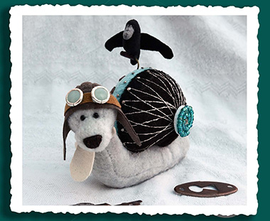 Die Bastelpackung für die 7,5cm große Steampunkschnecke bringt viel Zubehör mit:Perlen,Silberdraht, Drahtschnecken,Augen,Nadel, Splinte usw. Es ist alles enthalten um die Schnecke mit Fliegermütze und Brille, ihr Häuschen und den kleinen Raben zu fertigen. Füllwatte, Stahlgranulat,Garn usw. und das übliche Werkzeug wird zusätzlich benötigt. |