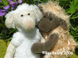 Kuddel und Muddel, sind sozusagen echt scha(r)f. Knappe 7,5cm groß sind dieses Schafis. Die kuschligen Körperteile sind aus Plüsch.Arme,Beine und das Gesicht sind aus kurzflorigem Upholstery Velvet gefertigt. Zusätzlich haben sie Draht- einlagenin den Armen,die somit freipositionierbar sind. |