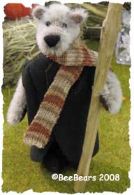 Nathan, kommt mit seinen gut 7cm im klassischen Schäferoutfit daher. Sein Mantel ist aus feinem Leder und der Schal selbstverständlich handgestrickt. Er ist aus Sassy Frosted Longpile gefertigt. Auch er hat Drahteinlagen in den Armen. |